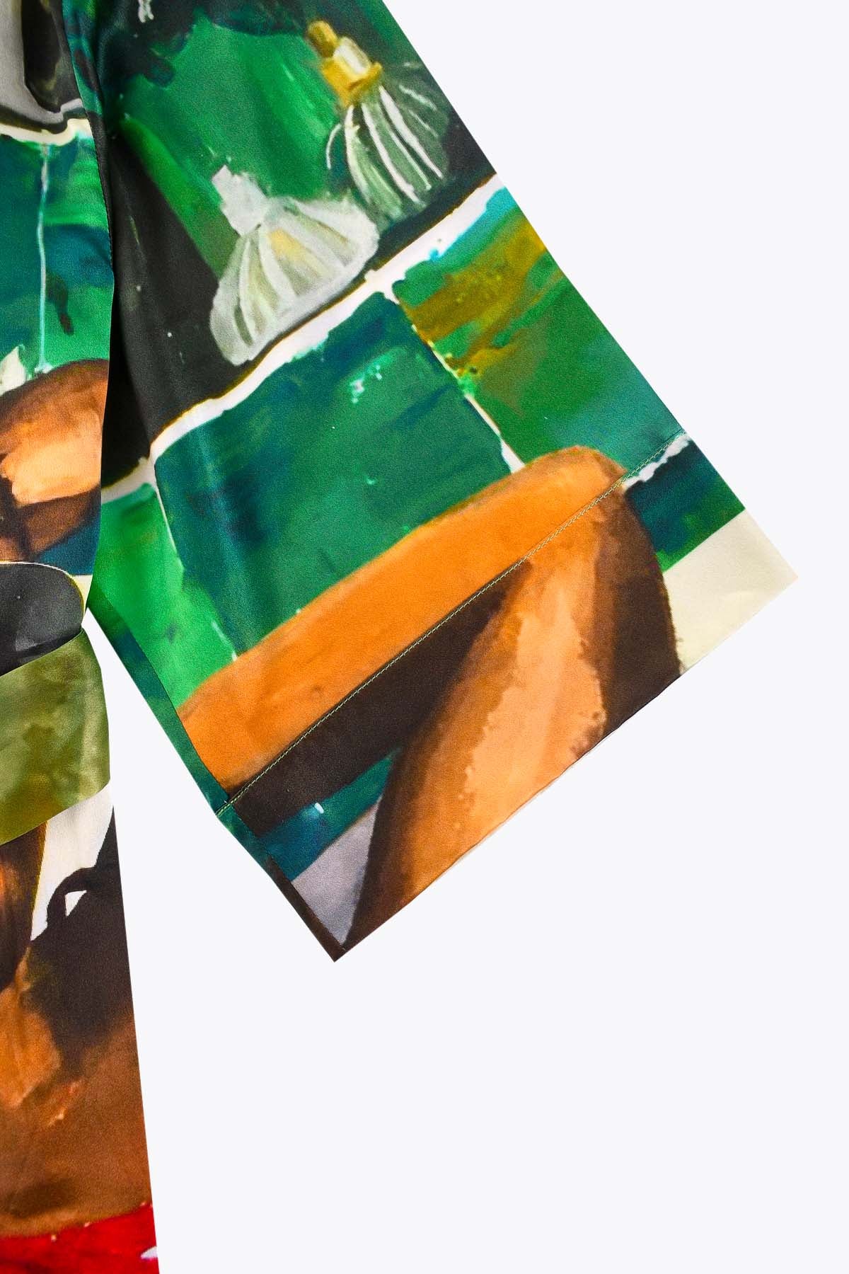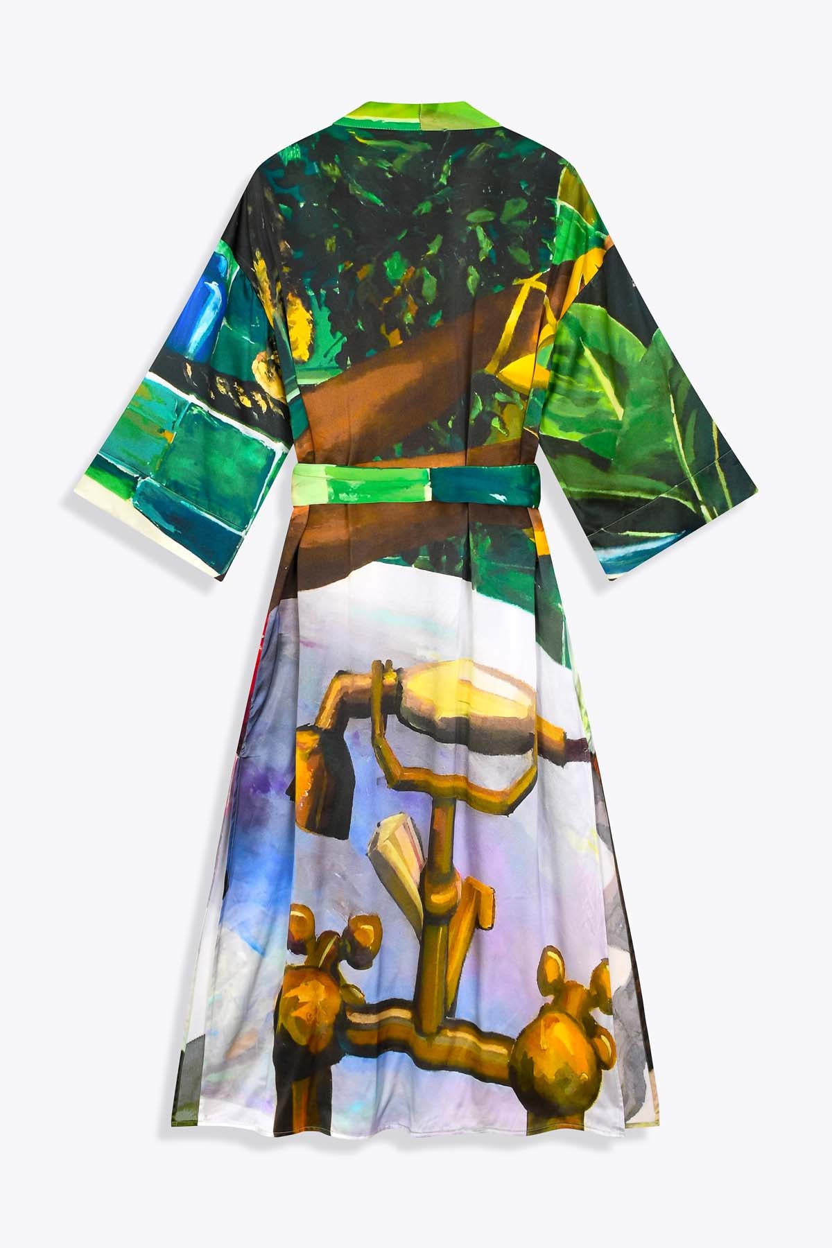 Ce kimono femme en soie est sublimé par une impression inspirée de Une Bouteille à ta Mère, une œuvre originale d’Aurélie Quentin, artiste peintre contemporaine originaire de La Réunion, reconnue pour son univers figuratif vibrant et son regard audacieux sur les scènes de vie. Une Bouteille à ta Mère se distingue par son caractère expressif et décalé, conférant à ce kimono une présence artistique forte et un style affirmé.